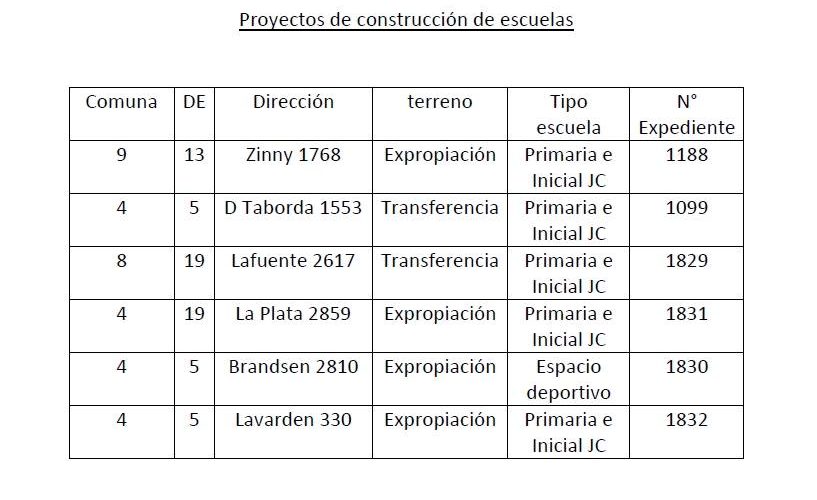 TE INVITAMOS A DEFENDER EN TU COMUNA Y DISTRITO ESTOS PROYECTOS DE CONSTRUCCIÓN DE ESCUELAS