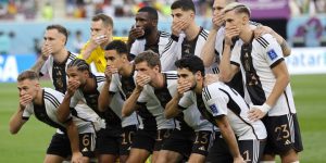 Doha (Qatar), 23/11/2022.- Selección alemana se tapa la boca para denunciar censura