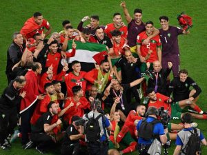 12/2022 Seleccionado marroquí levanta bandera palestina